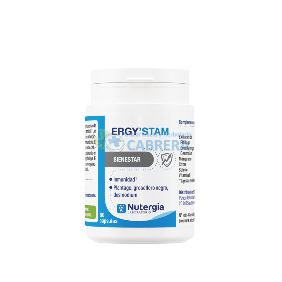 ERGY’STAM es una sinergia de 3 plantas (llantén, grosella negra y desmodium), 3 oligoelementos (manganeso, cobre y selenio) y vitamina C, especialmente formulada para ayudar a restablecer el confort de la esfera ORL y reducir los síntomas respiratorios ligados a las sensibilidades estacionales.