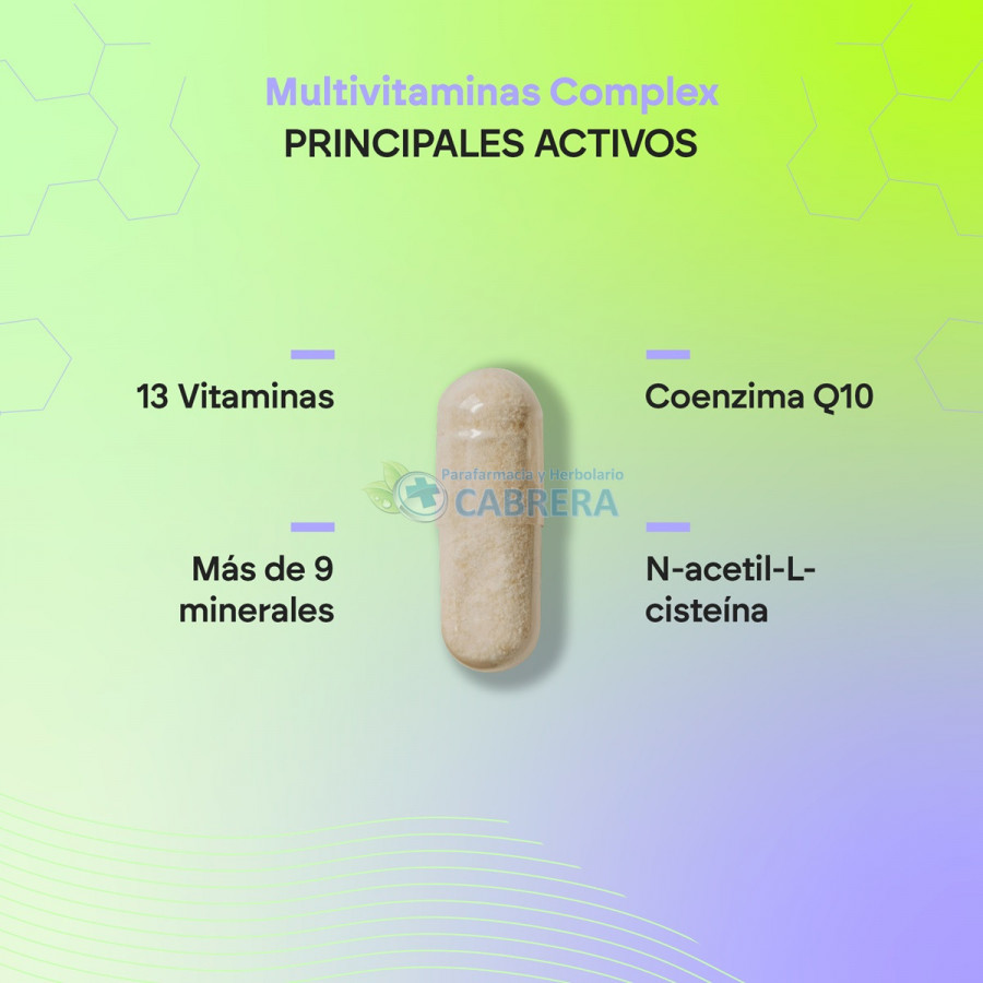 Multivitamins Complex de Nutralie es un suplemento formulado con L-Cisteína, Coenzima Q10, Vitaminas del grupo A a la E, Vitamina K y Minerales.